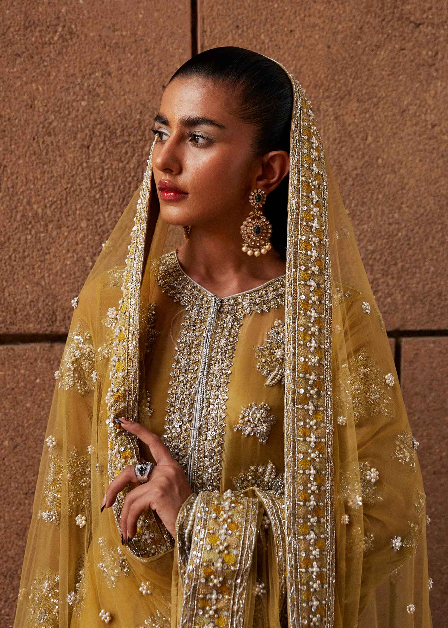 Hussain Rehar Yellow Bridal Collection Organza